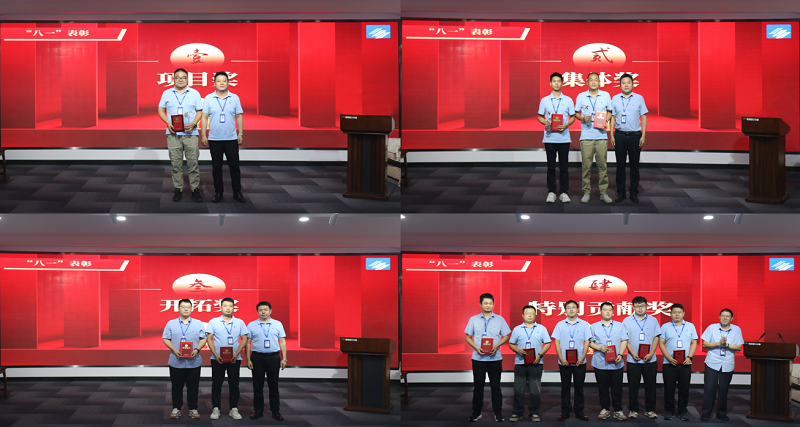 公司新研产品获得的批量订单,在团队的共同努力下,克服了周期短、任务重等各项困难,攻克了多项关键技术,保质保量完成交付,获评“项目奖”,雷亚利副总为获奖代表颁奖。市场部与生产部电气车间荣获“集体奖”,黄友桥副总为获奖集体颁奖。李剑辉等2人荣获“开拓奖”,吴德明副总为获奖人员颁奖。吴峰等6人荣获“特别贡献奖”,李志俊总工为获奖人员颁奖。