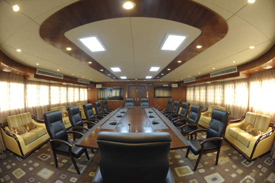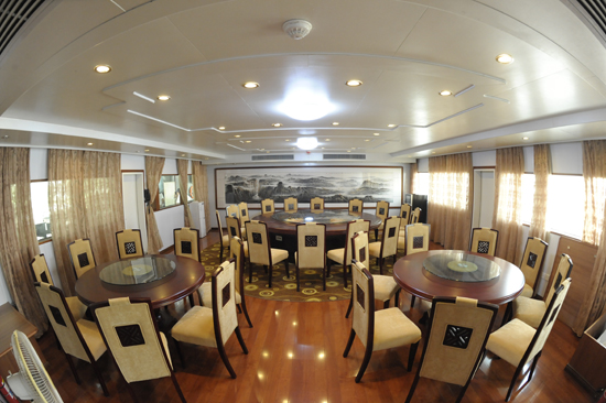 本船内装设计遵循“以人为本”的原则,重点突出“设计新颖、装饰豪华、施工精细”的要求,通过对本船的装饰,使之成为长江航道系统装饰规格最高、使用功能最全、指挥系统最先进的指挥船。同时满足船检规范。